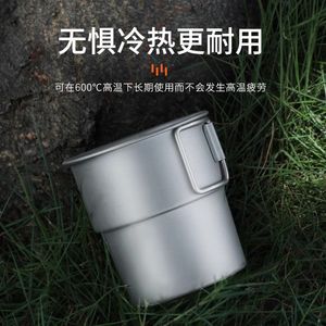 浄化チタンマグウォーターカップポータブル屋外旅行ティーメーカーカップ折りたたみハンドル沸騰カップキャンプセット