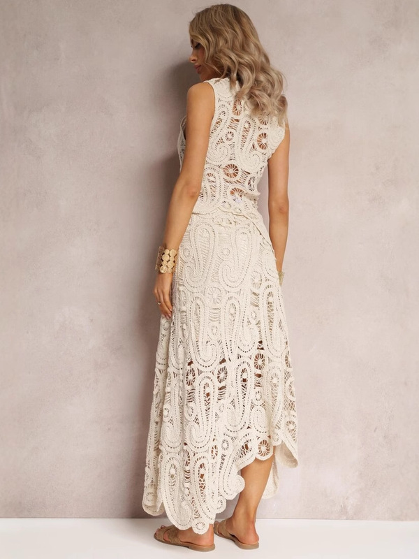 女性用夏かぎ針編み中空織り不規則ベストトップミドル丈スカートスーツの新しいクロスボーダー外国貿易製品の完全なセット