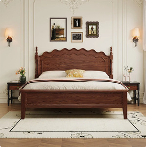 中世スタイルのアッシュ無垢材ベッド 1.8m ダブルベッドフレンチレトロベッドマスターベッドルーム収納ベッドアッシュウッドウェディングベッド