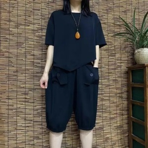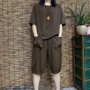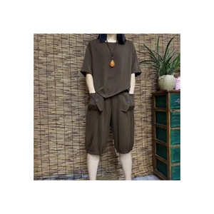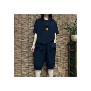 夏のファッショナブルなカジュアルスーツ、ゆったりとした洋風のトップスとクロップドパンツの2点セット、快適でお腹をカバーし、痩身と美白に役立ちます。