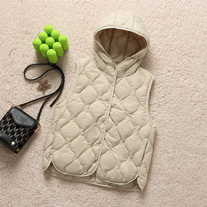 クロスボーダー薄型ダウンジャケットベストレディースショートフード付き韓国風大きいサイズ痩身ベストホワイトダックダウンベストライナー