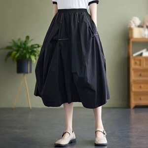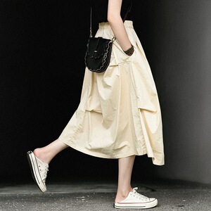 外贸原单出口休闲半身裙夏宽松高腰显瘦纯色百搭拼接不规则中长裙