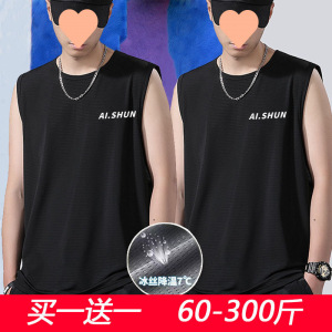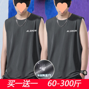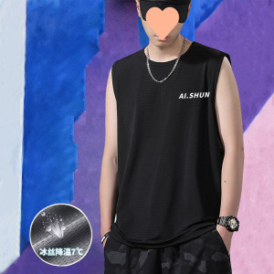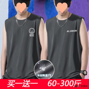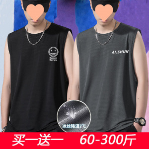 大きいサイズプラスファット夏アイスシルクベストメンズ薄型スポーツフィットネスベストノースリーブシャツ通気性速乾バスケットチャーミングクー