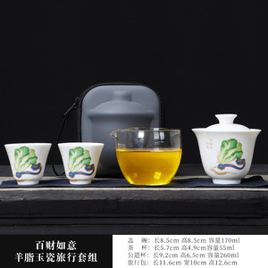 トラベルティーセット-Bai Cai Ruyi (カップ2個、カバーボウル1個、フェアカップ1個) 収納バッグ