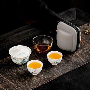 Qianli Jiangshan-Gaiwan トラベル ティー セット + トラベル バッグ