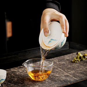 トラベルティーセット - Qianli Jiangshan - (カップ2個、カバーボウル1個、フェアカップ1個) - 収納バッグ