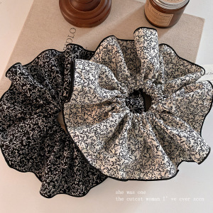 韓国二層花柄ヘアゴム新しいフレンチガールヘアポニーテールボールヘッドフラワーレザーヘアロープ