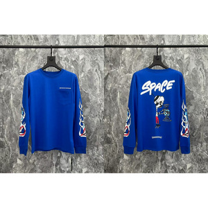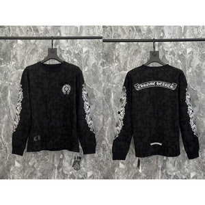 2025クロスボーダートレンディブランドクロウ初春新作ラウンドネック長袖サンスクリットプリント長袖Tシャツスポット卸売