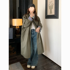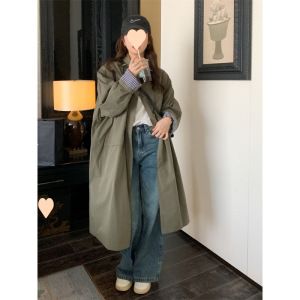香港スタイルのレトロなワークウェアウインドブレーカージャケット女性のための春と秋の和風小柄なデザインルーズミドル丈膝上コート