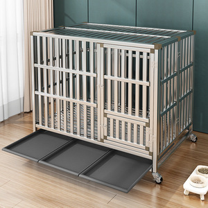 ステンレス鋼犬ケージ折りたたみ厚いトイレ付き大型中小型犬家庭用屋内ゴールデンレトリバーテディペットケージ