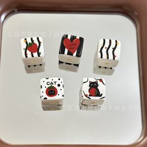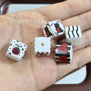 ペイントストライプイチゴ小さな黒猫アクリルビーズ diy ヘアロープジュエリー携帯電話チェーンバッグキーホルダー素材