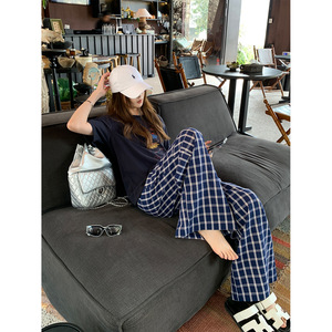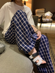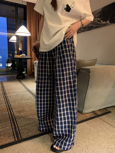 Gejia モールの同じスタイルの女性の 2025 夏怠惰でリラックスしたルーズチェック柄パンツ女性のワイドレッグカジュアルパンツ女性