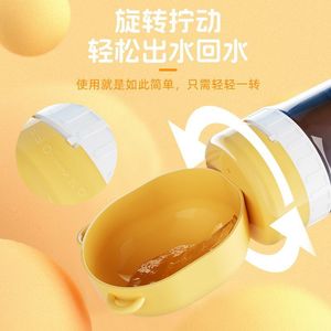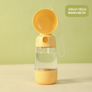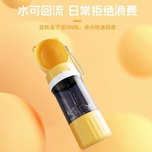ペットのお出かけ用ウォーターカップ、ポータブル屋外用ウォーターディスペンサー、ワンクリックで付属するウォーターカップ、子犬の屋外用飲料水と餌やりオールインワン