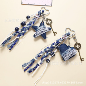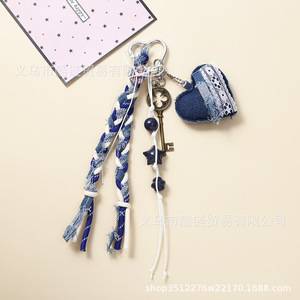 miu ペンダントレトロ甘いクールデニムブルーラブバッグペンダントスクールバッグペンダントキーホルダー装飾バッグペンダント