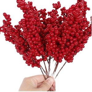 Temu ホット販売クロスボーダーシミュレーションウィンターグリーンフルーツフォーチュンフルーツ春祭り赤い果実シミュレーションフラワー装飾赤いベリー造花装飾