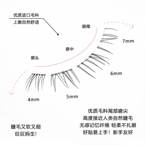 かわいいまつげ、接着剤不使用、下まつげは透明で透明な茎、ママスタイル、自然なシミュレーション、フォトジェニックなつけまつげ