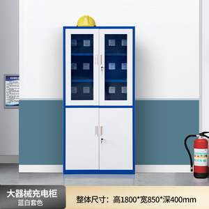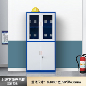 ガラス製の上部と鉄製の充電キャビネット - 青と白