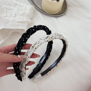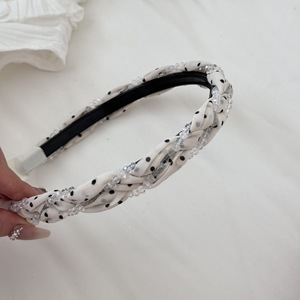 ファッションレトロな波点水晶巻きカチューシャ女性2025新高級感のあるカチューシャ髪飾り
