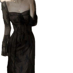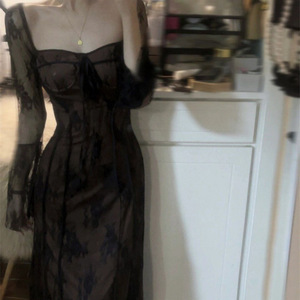 プラスサイズの少し太ったmm気質セレブレーススクエアネック中空ドレス女性の夏の新しいスリムフィットミドル丈スカート