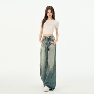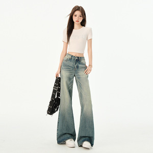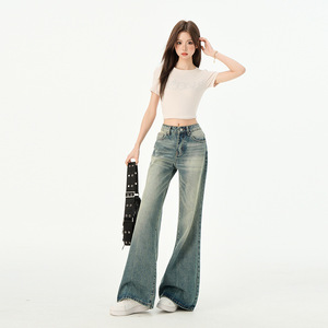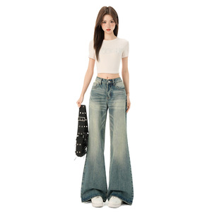 送料無料アメリカンレトロノスタルジックなウォッシュローウエストホットガールフレアパンツドレープ多用途春夏ジーンズ女性用