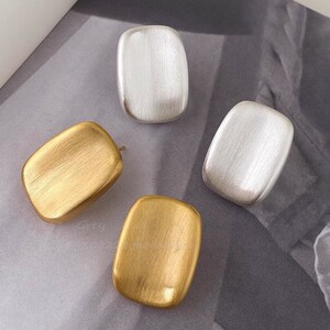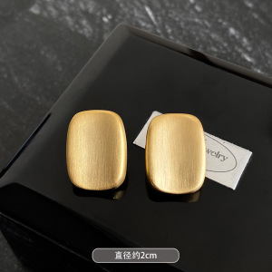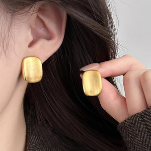 レトロなヘビーデューティスクエアブラッシュド曲面イヤリング、女性用、ヨーロッパとアメリカのニッチな気質、ハイエンドで多用途なシルバーニードルイヤリング