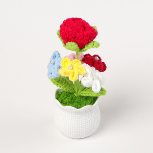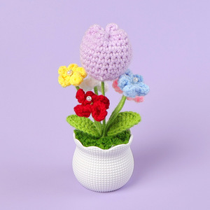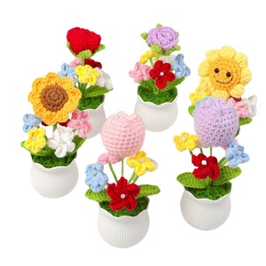完成したウールの花、模擬花、ひまわり、小さな鉢植え、車載用家庭用緑の植物、チューリップの装飾品、デスクトップ装飾