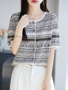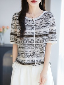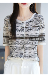 2025 新しいファッション気質竹リネンカジュアルニットカーディガンジャケット半袖コントラストカラートップ婦人服卸売