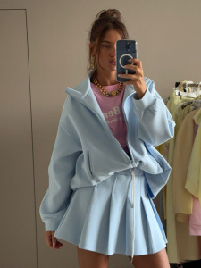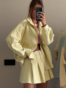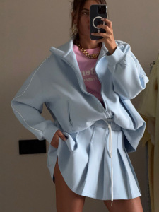 Amazonクロスボーダーレースアップスウェットシャツプリーツスカートスーツ2025新しい気質ラペルジッパーロングトップスーツ