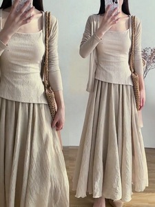綿麻の半身のスカートの女性の夏の2025新型のカジュアルなハイウエストの垂れ下がった感じの氷の糸のA字の百のしわの大きい傘のスカートのロングスカート