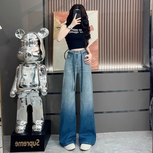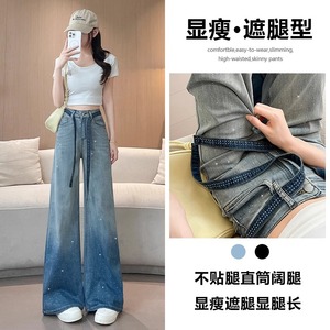 グラデーションホットダイヤモンドワイドレッグジーンズ女性のための 2025 新しい夏薄い超人気ドレープルーズフレアストレートパンツ