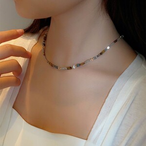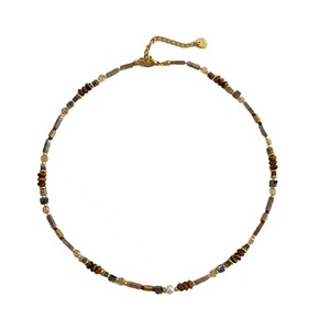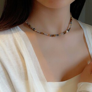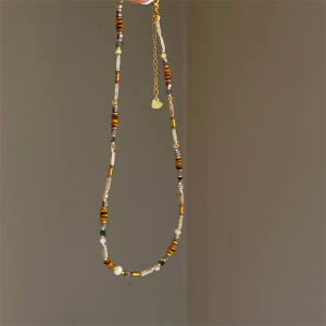 メイラードスタイルレトロニッチ天然石タイガーアイビーズネックレスレディースライトラグジュアリーニッチ気質鎖骨チェーンアクセサリー