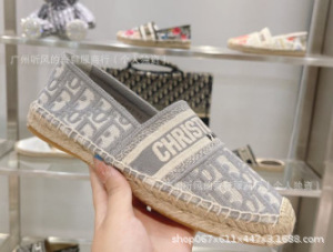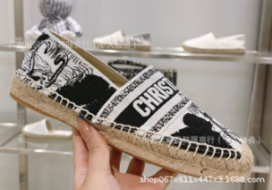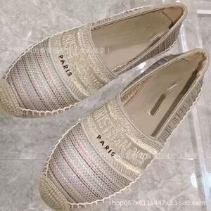 レターローファー わら編みレイジー 新Dペダル 万能ワンシューズ レディース 春夏 刺繍 ホームフィッシャーマン フラット 2025