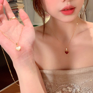 フランスの絶妙な両面オイルドリップマザーオブパールラブネックレスレディースライトラグジュアリーハイエンドニッチネックレスアクセサリー鎖骨チェーン