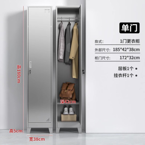 304不锈钢更衣柜宿舍储物柜带锁员工单门柜家用收纳柜浴室夹缝柜