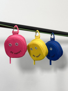 BEHappy 収納袋 スマイリーフェイスバッグ 手持ち化粧品袋 小銭入れ 撥水ペンダントバッグ マッチングバッグ