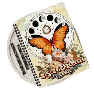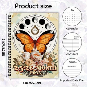 1冊の2025-2026年月間計画書は、週間と月間の学習カレンダーを提供します - 紙製のリングバインダー