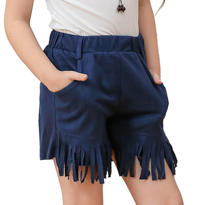 子供用カーニバルフリンジパンツ、エスニック風レトロ鹿革ベルベット、ウエスタンデニムショートパンツ、女の子用ヒッピー風パフォーマンスウェア