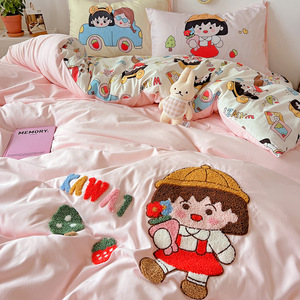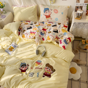 2025年新作 インズ かわいいタオル刺繍 4点セット 純綿 シンプル 肌に優しい 掛け布団カバー 学生寮用シーツとボックスシーツ 4