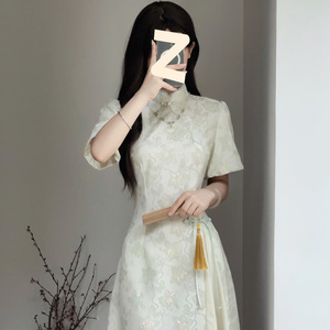 緑の小さな新鮮なチャイナドレス若いハイエンド気質茶服オード2025春夏新作小柄ドレス