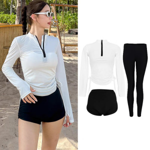 少女分体泳衣高级感长袖防晒速干显瘦竞速冲浪浮潜水母衣潜水服女