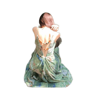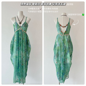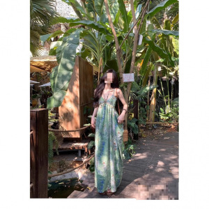 2025 夏の新スタイルオズの魔法使いサスペンダーベルトウエスト花柄ドレス女性の休暇スタイル旅行着用