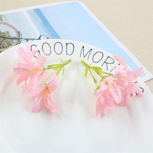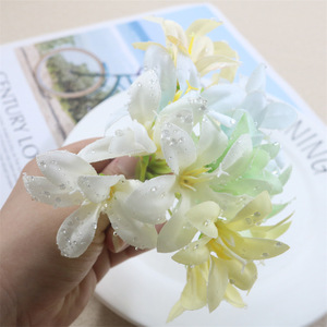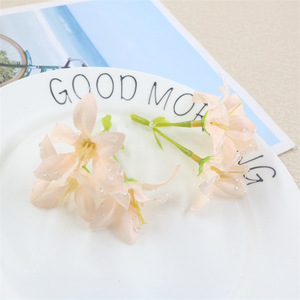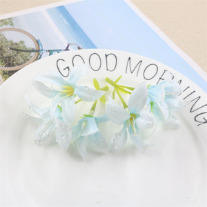 批发新款仿真花露水三叉百合DIY手工花束婚庆拍照装饰用品绢花