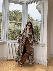 卸売ヨーロッパとアメリカの新しい冬の女性の毛皮コート模造ウサギの毛皮ミッドレングス耳フード付き毛皮コートヒョウ柄