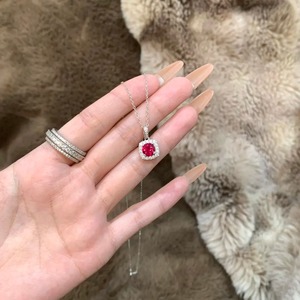 ライトラグジュアリースクエアレッドジルコンペンダントネックレスニッチハイエンドエレガントな気質鎖骨チェーン夏多用途ネックレス