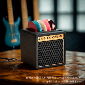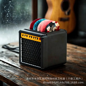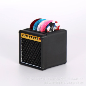 ブラックのギターピックボックス、ユニークなデザイン、多機能収納、デスクトップ整理。