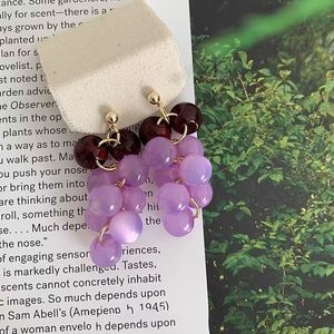 マルベリーパープルコントラストライトパープルグレープイヤリング