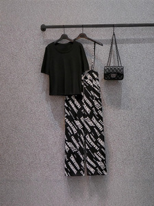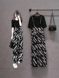夏のネットセレブ人気ファッションスーツレディース新デザインTシャツ痩身オーバーオール2点セット