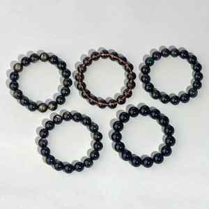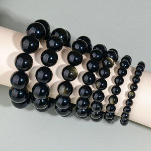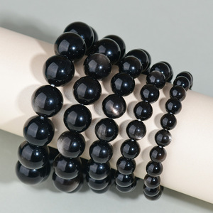 天然墨西哥黑曜石圆珠单圈手串黑曜岩金曜时尚男女情侣款手链