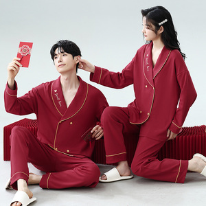 Yu Zhaolin カップルパジャマ女性のプラスサイズの純綿赤新婚結婚式干支年ビッグレッドホームウェアセット