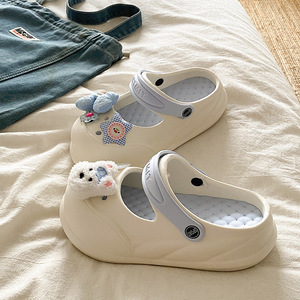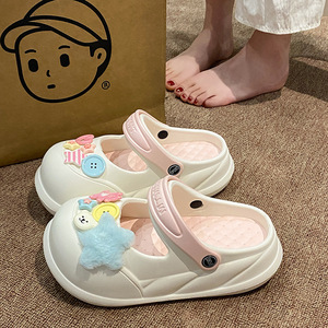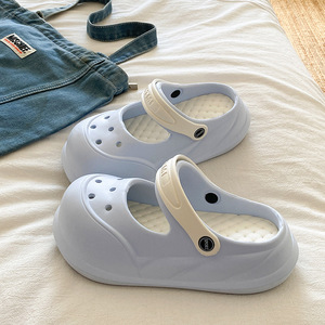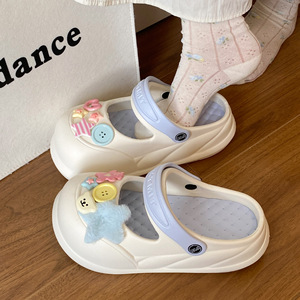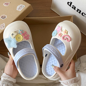 夏の甘い女の子の滑り止め海辺EVAつま先ハーフスリッパイン多用途トレンディなメリージェーン取り外し可能な下駄